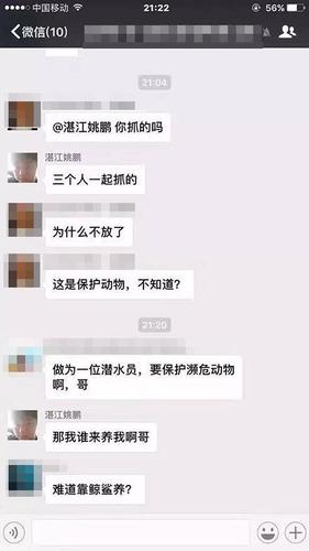 前述广东湛江海洋与渔业局贾姓科长表示,据目前该局了解的情况,此事尚未和湛江有任何联系,“我们目前得到的信息是,姚某是在2016年5月份在湛江潜水学校培训过一段时间,是那一批培训学员之一,这个(微信)群是这一批培训学员建的一个群?!?/p>
