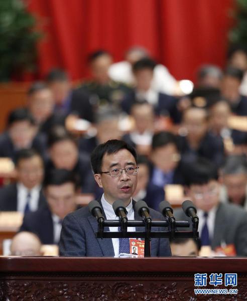3月10日,全国政协十二届五次会议在北京人民大会堂举行第三次全体会议。这是潘建伟委员代表九三学社中央作《敢于担当 从我做起为建设科技强国建功立业》的发言。 新华社记者 王晔 摄