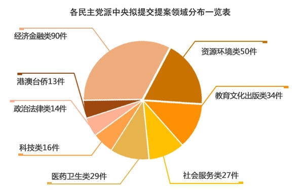 据初步了解,目前民革、民盟、民建、民进、农工党、致公党、九三学社、台盟今年拟向全国政协提交提案共计334件(其中,党派中央提案共299件,九三学社界别提案35件),涉及经济金融、资源环境、教育文化、医药卫生、社会服务、科学技术等各领域。