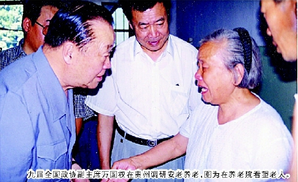 九届全国政协副主席万国权在贵州调研安老养老,图为在养老院看望老人。