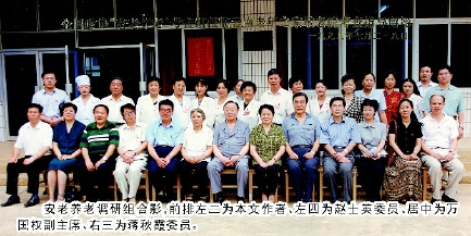 安老养老调研组合影,前排左二为本文作者、左四为赵士英委员、居中为万国权副主席、右三为蒋秋霞委员。