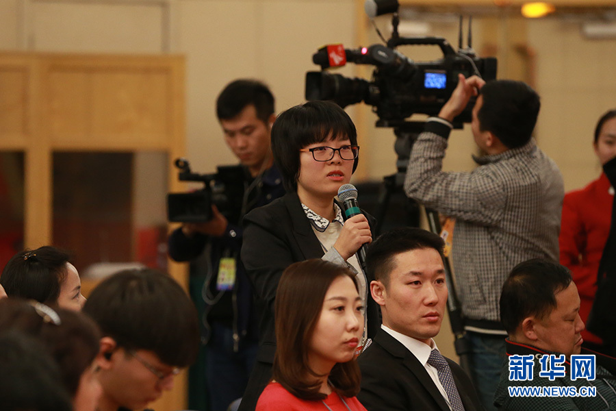 新华社记者就“乡村教师支持计划”向教育部部长陈宝生提问。新华网/中国政府网 傅义洲 摄