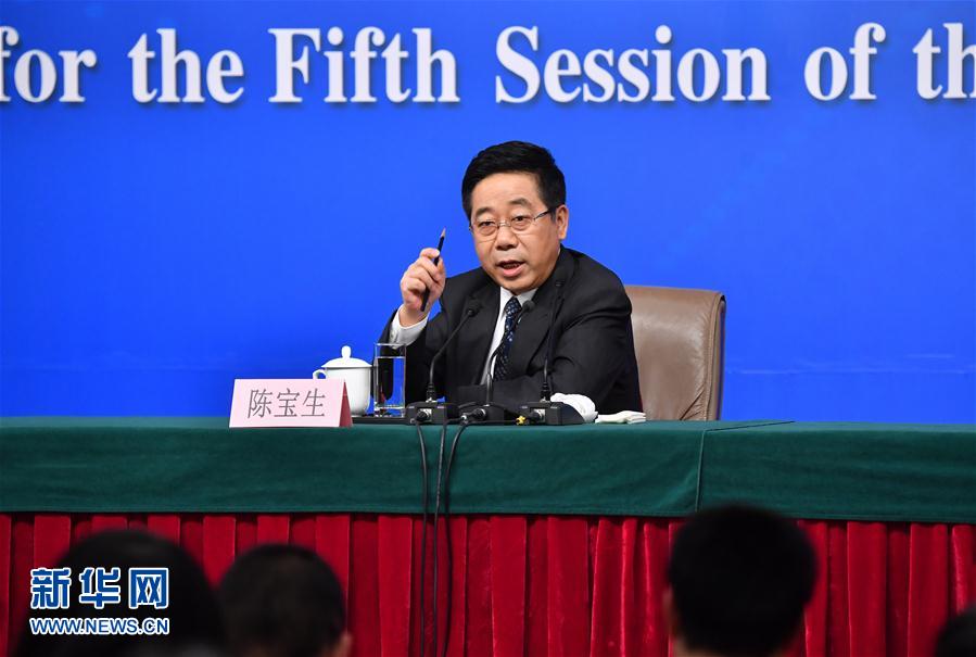 陈宝生回答记者提问 新华社记者 李鑫 摄