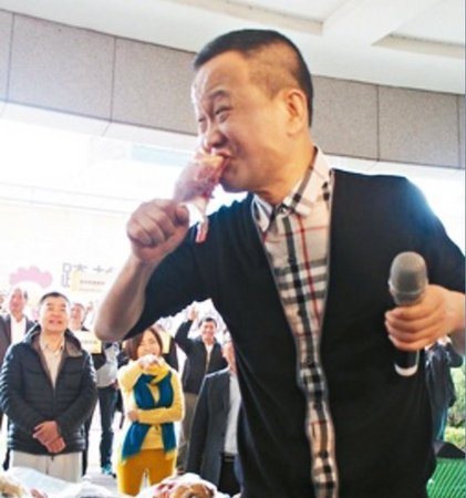 台北市议员林瑞图曾经拿起生的鸡腿,大口就咬。(台湾《联合》报系资料图)