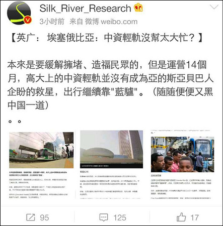 关键词:中国 埃塞俄比亚 轻轨 外媒