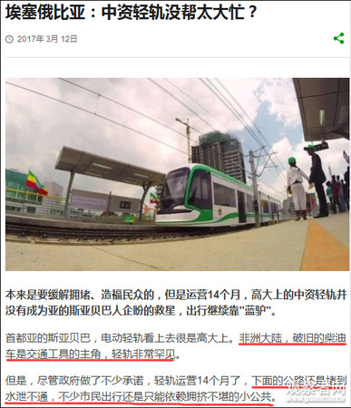 关键词:中国 埃塞俄比亚 轻轨 外媒