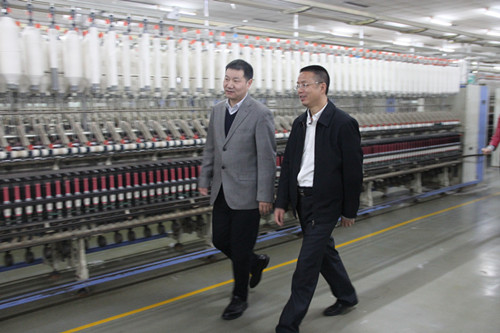 富阳区工商联主席、春江轻纺总经理孙伯勇,首先对远道而来的胡局长一行来公司考察表示热烈欢迎,并陪同参观了四纺生产车间,边看边交流。
