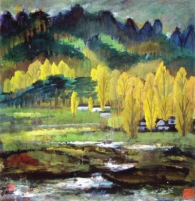 林风眠捐赠给上海中国画院的作品《黄枫》,创作于20世纪50年代。(资料照片)