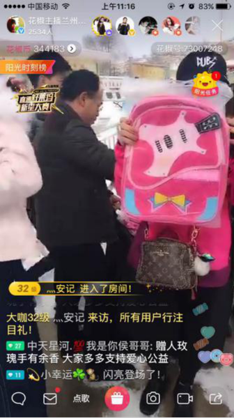大雪难挡公益热情 花椒主播为兰州贫困学生送温暖