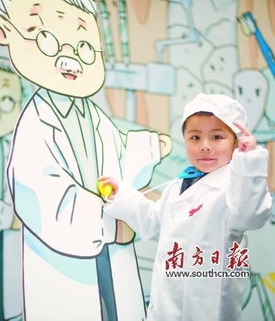 爱牙公益活动现场,小朋友当小牙医,拉近与医生的距离。记者张梓望 摄