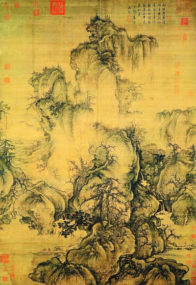 而这也正是郭熙所确信且世之笃论的“山水有可行者,有可望者,有可游者,有可居者”(《林泉高致》)??尚小⒖赏谋澈笫强捎?、可居,且并不仅仅是身体,更是一场心灵的旅程,对山川毓秀的描摹,内化成为一种对君子理想人格的追求与光阴往还的感叹。古往今来蕴含在上下四方的小小画绢中,使得山水成为天地,天地化为宇宙。