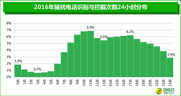 图1:2016年骚扰电话识别与拦截次数24小时分布