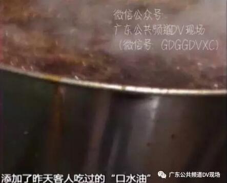这个“口水油”虽然是客人吃过,但好歹还是直接沸煮过的,而接下来暗访的情况 ,就更加令人作呕了!当天晚上21时许,当有一桌客人要求给锅底加辣时,厨师居然将前面客人吃过的“口水油”,未经加工,就直接加给了客人食用。