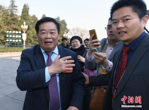 3月3日,全国政协十二届五次会议在北京人民大会堂开幕,曹德旺委员步入会场。中新社记者 侯宇 摄