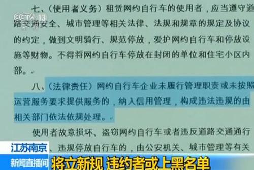 征求意见稿中所说的网约自行车包括共享单车及共享电单车。企业在南京市场上投放车辆前,需在管理部门备案。在为使用者提供车辆前,需对其进行实名制注册登记,并为其购买第三者责任险、人身意外险等保险。