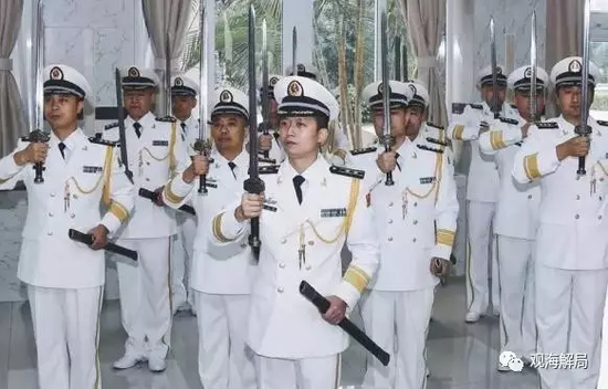 3月15日,中国海军首次举行授剑仪式,南海舰队某驱逐舰支队的13名舰长政委被授予“深蓝之?!?。