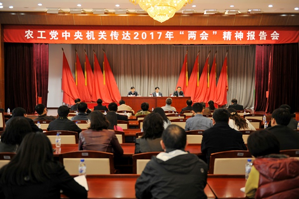 2017年3月17日下午,农工党中央机关举行报告会,专题传达2017年全国“两会”精神。全国政协常委兼副秘书长、农工党中央副主席何维出席报告会并传达全国政协十二届五次会议精神;全国人大常委会委员、农工党中央副主席龚建明出席报告会并传达十二届全国人大五次会议精神;全国政协委员、农工党中央副主席兼秘书长曲凤宏主持会议。