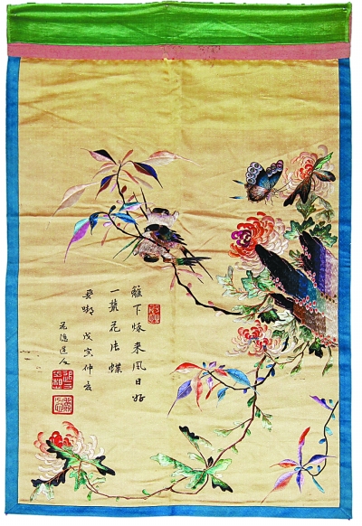 国家级非遗?;は钅肯嫘?,在2100多年前的西汉时期就已发展到了较高的水平。“湘绣之母”——桃源刺绣,享有“国之极品”尊号,移植了中国古代绘画、诗词、书法、金石等诸多艺术的精华,在各类底料上以精湛的针法、多彩的丝线,织绣出生活的温情,被誉为湘绣中的一枝奇葩。大体看去,桃源刺绣在材料和技法上与其他地域刺绣差别不大。然而,在题材范围、构图风格、造型习惯、色彩品位、精神气质等方面,桃源刺绣在全国传统刺绣领域有特别鲜明的一望而知的个性和雅俗共赏、独领风骚的艺术地位。