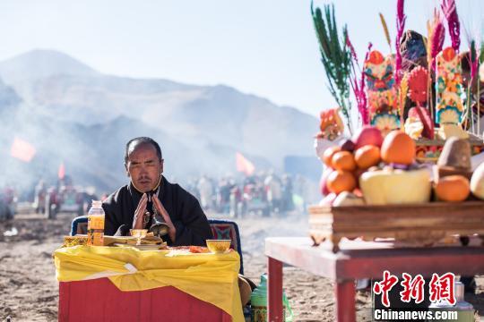 3月16日西藏拉萨堆龙德庆区马乡马村春耕仪式前诵经祈福的僧人何蓬磊摄