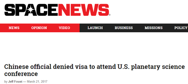 这位被拒签的中国人员是中国探月与航天工程中心副主任于国斌,他原本计划3月19日在美国举行的“microsymposium 58”研讨会上作关于中国开发月球和火星计划的报告。据悉,在“microsymposium 58”研讨会后,将举行月球和行星科学会议。