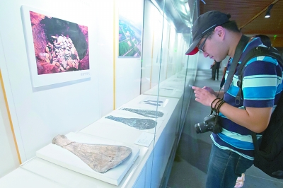 北京,观众在参观国图馆藏甲骨文实物。赵冰摄 光明图片/视觉中国