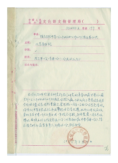 ③文化部拨交甲骨给国图的档案 国家图书馆供图
