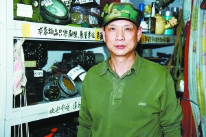 30年来矢志不渝,大韩已成为军品圈的收藏名人,他收藏有八路军的文件包、子弹夹、油灯、干粮袋、书报;侵华日军的钢盔、军刀、残破的刺刀、枪套、水壶、军装等藏品500多件,也在潘家园旧货市场现代收藏品大厅二层开了店,专门经营各类军事收藏品和影视道具。大韩对革命遗物具有特殊的情感,他想铭记曾经战火纷飞的艰苦岁月,让保家卫国的爱国精神得到延续、警醒后人,更期盼和平发展成为全人类共同的主旋律。(丁茜)
