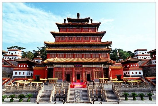 以普宁寺为例,普宁寺在外八庙建筑群中有着十分重要的地位,建成于乾隆二十年(1755年),占地33000平方米,是外八庙宗教活动的中心。由于寺内有一尊金漆木雕大佛,普宁寺俗称大佛寺。