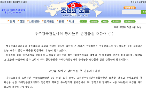 朝鲜官媒“今日朝鲜”网站刊文介绍其卫星发展史