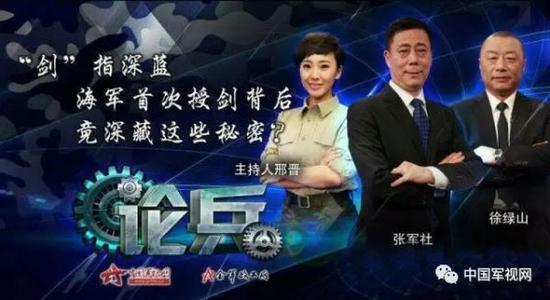 作为一档军事脱口秀节目,除了女主持人邢晋之外,首期《论兵》邀请到的嘉宾是海军军事学术研究所张军社研究员、海军舰艇学院徐绿山教授。其中,徐绿山作为我国海军第一把佩剑"海之剑"的提议者和倡导者,此次也是他本人首度解密授剑从公开提议到授予全过程。