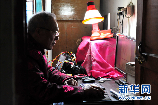 袁国悦和他编撰的民俗志(张国荣 摄)