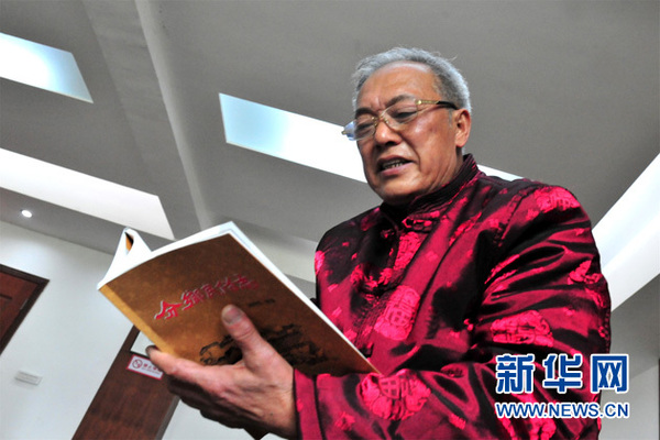 袁国悦编撰民俗志工作照(张国荣 摄)