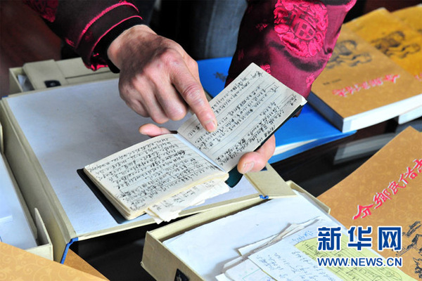 袁国悦编撰民俗志记录的笔记(张国荣 摄)