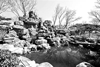 在中心广场北侧的荷园就是水葬区。该水面面积95平方米,岸边安置景石100余块,可以作为安葬骨灰的标志物。北青报记者在现场看到,这里设计了一个可循环的小型瀑布,蜿蜒的水系配以烂漫花卉,湖中种植荷花、芦花、菖蒲等植物,横跨水面的是一座大约5米长的汉白玉石桥。水边置石与瀑布巧妙结合形成了小桥流水的灵动画面。