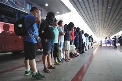 去年8月31日,诈骗团伙8名嫌疑人从湖南衡阳押解回京。 资料图片/新京报记者 王飞 摄