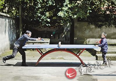 令狐老师中午放弃休息,陪谭陆森打乒乓球。