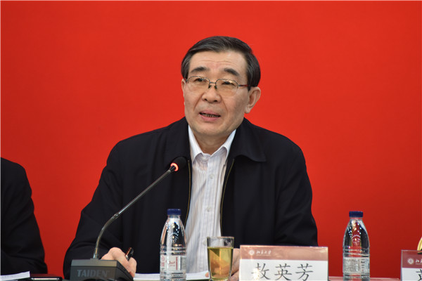 敖英芳在致辞中对北大盟员在本职工作、学校建设中发挥的作用表示充分肯定。他指出,北京大学思想政治工作要走在高校的前面,知识分子要走到前面。希望北京大学民盟组织要进一步努力工作,发挥优势,为北京大学发展、为北京发展、为中华民族伟大复兴中国梦的实现贡献力量。
