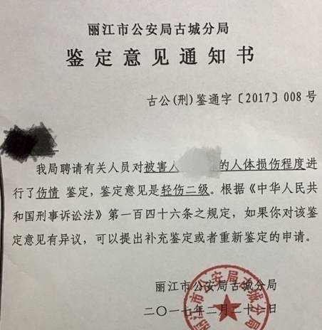 但是,让她至今仍有怨言的是,丽江警方在自己刚刚受伤时,为什么不拍照取证,同时,她对那份“迟来的伤情鉴定”充满怀疑,因此,再次向丽江警方提出鉴定申请,“而且,因为遭受暴打,我现在经常头疼,呼吸困难,视物模糊,严重影响了我的生活,请问,这样的状况又该如何鉴定?”