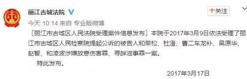 目前,小董被打的案件仍在推动,已进入审理阶段。3月17日,据丽江市古城区法院官方微博消息,6名嫌疑人因涉嫌故意伤害罪、寻衅滋事罪被采取刑事拘留强制措施。
