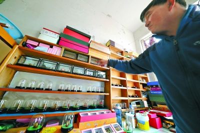 在孙怀忠眼里,一个毛猴的制作过程相当简单,制作者将蝉蜕的头和四肢轻轻拧下来,用胶水粘在辛夷花蕊上,待胶水风干20分钟,一个毛猴就做成了。