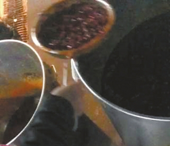 3月27日晚,成都高新区新乐路。执法人员现场封存“大虎老火锅”后厨有残存牛油的不锈钢桶。