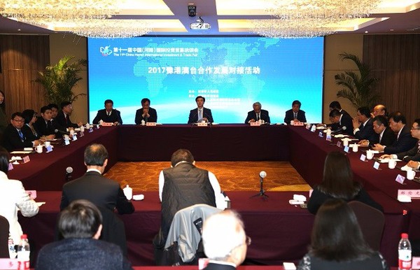 3月29日,由河南省人民政府主办,河南海外联谊会、省政府港澳办、省台办、省商务厅联合承办的2017豫港澳台合作发展对接活动在郑州举行,是第十一届中国(河南)国际投资贸易洽谈会的专题活动之一。省委常委、统战部部长陶明伦出席活动并致辞。
