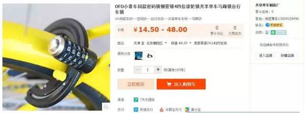 某宝上一家售卖“共享单车密码锁”的商家客服告诉记者,而这个原来的“锁”,是指OFO共享单车上自带的螺纹密码锁。
