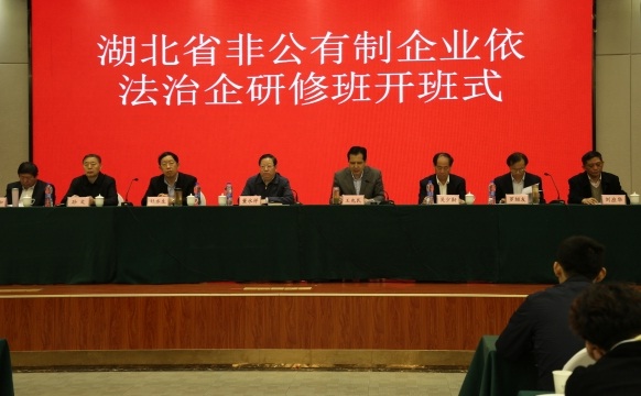 为深入贯彻落实中央和湖北省委、省政府关于深化供给侧结构性改革的重大决策部署,为湖北经济转型发展营造良好的法治环境、平安环境,促进民间投资和实体经济持续健康发展,3月28—30日,湖北省委政法委、湖北省人民检察院、湖北省工商联在黄石大冶联合举办湖北省非公有制企业依法治企研修班。省委政法委常务副书记、省综治办主任董永祥,省工商联党组书记王兆民出席开班式并讲话。黄石市委常委、统战部部长杜水生出席开班式并致辞。省工商联部分副主席(企业家)、常执委、直属商会会长,各市州工商联相关工作人员、所属商会会长参加了本次学习。