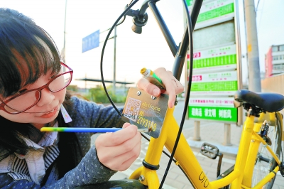 采访的那天,记者和李冬雨一起寻找号牌被划掉的“小黄车”。在和义农场附近,李冬雨找到了一辆。这辆“小黄车”的号码牌上是“27931?8”,第6位数字被划掉了。