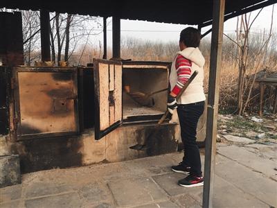 3月29日,北京市大兴区一家宠物墓地的一名工作人员,正在清扫一只猫的骨灰。本版摄影/新京报记者 大路