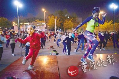 每天晚上7时30分,在沙坪坝区金阳易城国际广场,伴随动感的音乐声,上百人踩着节拍舞动,人群前方的舞台上,一位领舞者格外引人注目。台上领舞的静静还在幼儿园上大班,别看她只有5岁半,现在已有百多号粉丝。