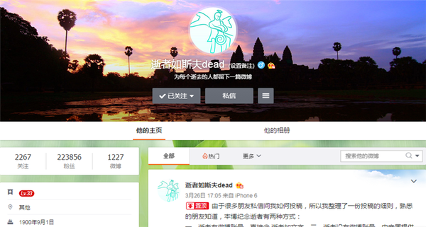 每天,小林的微博都会收到20多条私信,每一条都记录着鲜活生命的离去,每一条的背后都有发人深省的故事和充满张力的情感。这20多条留言,小林和微博小编都会仔细阅读,本着对22万粉丝负责的态度,偏向正能量引起思考的故事将会被采纳,成为每晚10点在微博上被小林“入殓”的人。