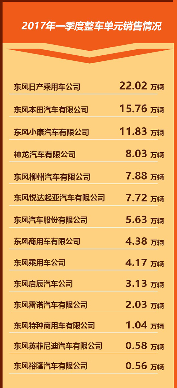 东风汽车一季度销售94.76万辆 同比增1.07%
