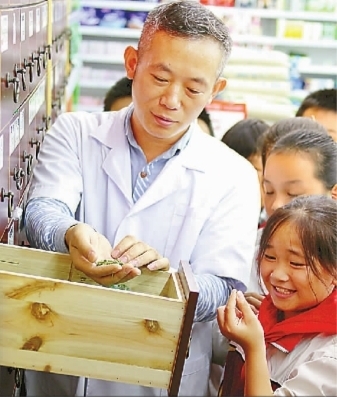 安徽合肥的小学生在中医馆体验中医文化。陈三虎摄 光明图片/视觉中国